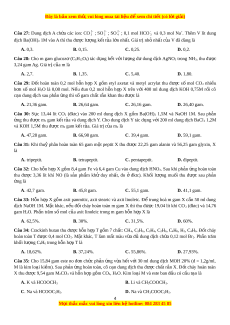 Câu 20: Phân bón nào sau đây làm tăng đ c ộ hua c a ủ đất? A. NaNO3. B. NH4NO3. C. KCl. D. (NH2)2CO. Câu 21: V i ớ thu c ố th duy nh ử ất là quỳ tím s nh ẽ n bi ậ t ế đư c ợ dung d c ị h các ch t ấ nào sau đây?