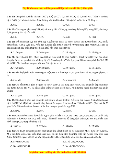 Đây là bản xem th , vu ử i lòng mua tài li u ệ đ xe ể m chi ti t ế (có l i ờ gi i ả ) Câu 27: Dung d c ị h A ch a