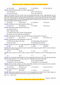 Câu 62: Polisaccarit (C6H10O5)n có khối lượng phân tử là 486000 đvC có hệ số trùng hợp là A. 1000. B. 4000. C. 3000. D. 2000.
