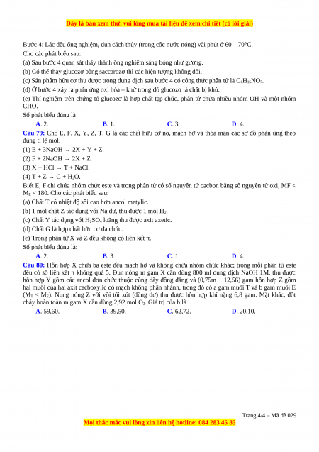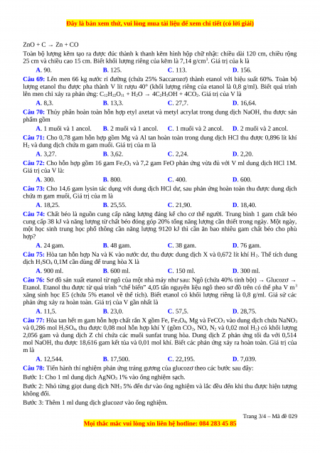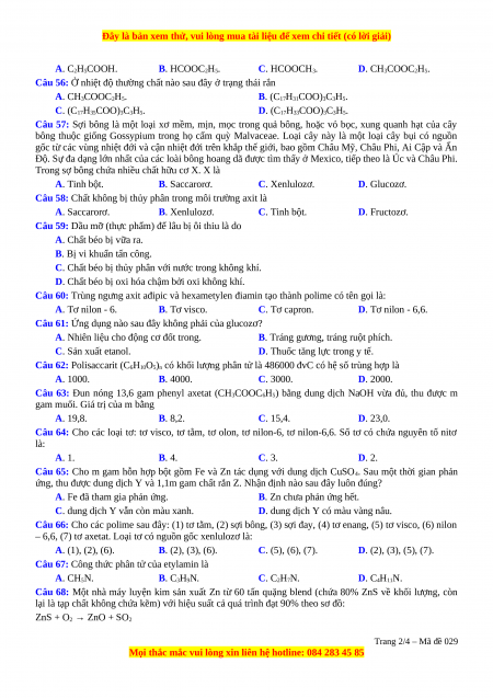 Câu 55: Este nào sau đây tác dụng với dung dịch KOH thu được metanol? Trang 1/4 – Mã đề 029