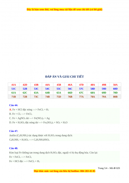 ĐÁP ÁN VÀ GIẢI CHI TIẾT