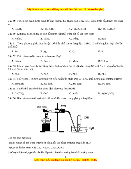 Đây là bản xem th , vu ử i lòng mua tài li u ệ đ xe ể m chi ti t ế (có l i ờ gi i ả ) (d) Khi k t ế thúc thí nghi m ệ ph i ả t t ắ đèn c n t ồ rư c ớ r i ồ m i ớ tháo ng d ố n khí ẫ . S phá ố t biểu đúng là A. 3. B. 4. C. 1. D. 2.