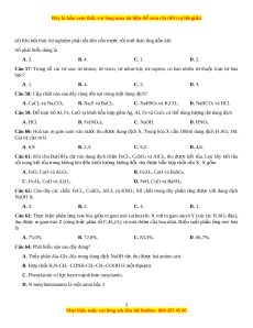 ị h Al(NO3)3 không phản ng ứ đư c ợ v i ớ dung d c ị h nào? A. NaOH. B. NH3. C. Ba(OH)2. D. HCl. Câu 48: S e ố lectron l p ớ ngoài cùng c a ủ các nguyên t ki ử m lo i ạ thu c ộ nhóm IIA là A. 4. B. 2. C. 1. D. 3. 1 M i
