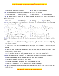 Câu 14: Ngày 16 - 5 - 1955, l c ự lư ng ợ nào sau đây rút kh i ỏ mi n ề B c ắ nư c ớ ta? A. Quân Nhật. B. Quân Mĩ. C. Quân Pháp. D. Quân Anh. Câu 15: M t ộ trong nh ng ho ữ ạt đ ng c ộ a ủ Nguy n Á ễ i Qu c ố P