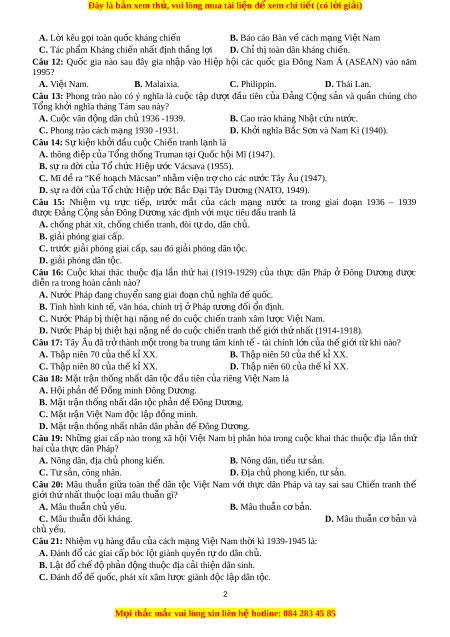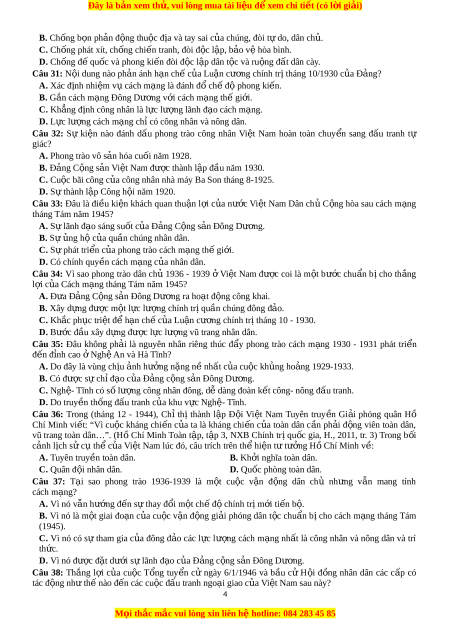 ệ đ xe ể m chi ti t ế (có l i ờ gi i ả ) B. Ch ng ố b n ph ọ ản đ ng t ộ hu c ộ đ a ị và tay sai c a ủ chúng, đòi t do, dâ ự n ch . ủ C. Ch ng phá ố t xít, ch ng ố chi n ế tranh, đòi đ c ộ l p, b ậ o v ả hòa ệ bình. D. Ch ng đ ố ế qu c ố và phong ki n đòi ế đ c ộ lập dân t c ộ và ru ng đ ộ ất dân cày. Câu 31: N i