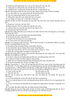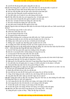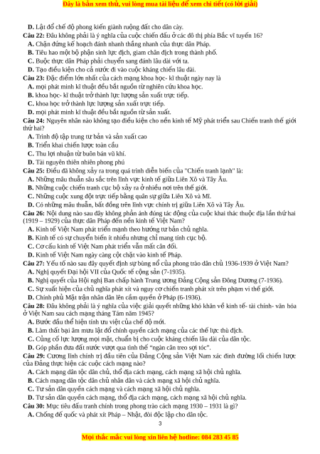 ự dân Pháp và tay sai sau Chi n ế tranh thế gi i ớ th nh ứ ất thu c ộ loại mâu thuẫn gì? A. Mâu thuẫn ch y ủ ếu. B. Mâu thuẫn c b ơ ản. C. Mâu thuẫn đ i ố kháng. D. Mâu thuẫn cơ b n ả và ch y ủ ếu. Câu 21: Nhi m ệ v hà ụ ng đầu c a ủ cách mạng Vi t ệ Nam th i ờ kì 1939-1945 là: A. Đánh đ c ổ ác giai cấp bóc l t ộ giành quy n t ề ự do dân ch . ủ B. Lật đ c ổ h đ ế ph ộ ản đ ng t ộ hu c ộ đ a ị c i ả thi n dâ ệ n sinh. C. Đánh đ đ ổ ế qu c ố , phát xít xâm lư c ợ giành đ c ộ l p dâ ậ n t c ộ . 2 M i