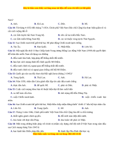 D. làm lung lay tận g c ố chính quy n N ề gô Đình Di m ệ . Câu 31: Sự ra đ i ờ c a ủ Liên minh nhân dân Vi t