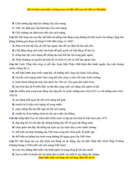 C. tiến hành cải cách toàn di n n ệ ền giáo d c ụ . D. quyết đ nh c ị ho l u hà ư nh tiền Vi t ệ Nam. Câu 19: M t ộ trong nh ng ữ ho t ạ đ ng ộ c a ủ nhân dân Vi t