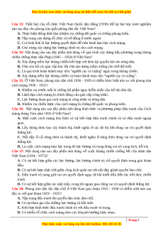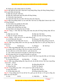 D. tình trạng chạy đua vũ trang kéo dài gi a ữ các qu c ố gia. Câu 14: M t ộ trong nh ng ữ nư c ớ Đ ng ồ minh có m t ặ ở Vi t ệ Nam trong năm đ u ầ sau Cách m ng ạ tháng Tám năm 1945 là A. Trung Hoa Dân qu c ố . B. Nhật Bản. C. Italia. D. Đức. Câu 15: M t ộ trong nh ng ữ hư ng ớ ti n ế công ch ủ y u ế c a ủ b ộ đ i ộ ch ủ l c ự Vi t ệ Nam trong Đông - Xuân 1953 – 1954 là