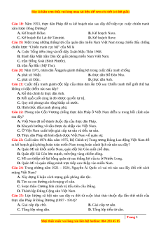 D. Thành lập Đảng C ng ộ s n ả Vi t ệ Nam. Câu 25: Lực lư ng ợ xã h i ộ nào sau đây ra đ i ờ từ cu c ộ khai thác thu c ộ đ a ị l n ầ thứ nh t ấ c a ủ th c ự dân Pháp ở Đông Dư ng ơ (1897 - 1914)? A. Giai c p ấ đ a ị ch . ủ B. Giai c p ấ t ư s n. ả C. Tầng l p ớ nông dân. D. Tầng l p ớ ti u ể t ư s n ả . Trang 3 M i ọ thắc m c