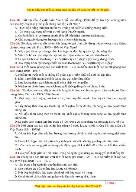 B. Đảm bảo phư ng ơ châm ch c ắ th ng ắ . C. Di n ễ ra ở hai đ a ị bàn r ng ừ núi và đ ng ồ b ng ằ . D. Đối tư ng ợ ti n ế công là chính quy n ề tay sai. Câu 31: Chủ trư ng ơ c a ủ Đ ng ả C ng ộ s n ả Đông Dư ng ơ t i ạ H i ộ nghị l n ầ th ứ 8 Ban Ch p ấ hành Trung ư ng ơ (tháng 5 - 1941) có đi m ể nào khác so v i ớ Lu n ậ cư ng ơ chính tr ị (tháng 10 - 1930)?