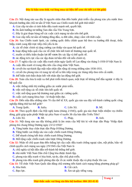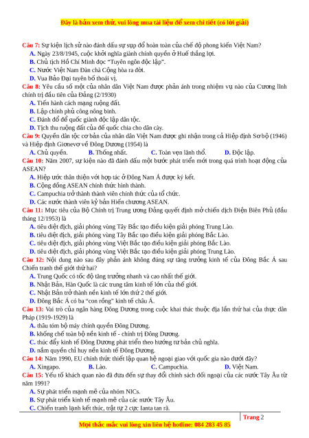 Đây là bản xem th , vu ử i lòng mua tài li u ệ đ xe ể m chi ti t ế (có l i ờ gi i ả ) Câu 7: S ki ự n ệ l c ị h s nà ử o đánh dấu s s ự p đ ụ ổ hoàn toàn c a ủ ch đ ế ộ phong ki n ế Vi t ệ Nam?