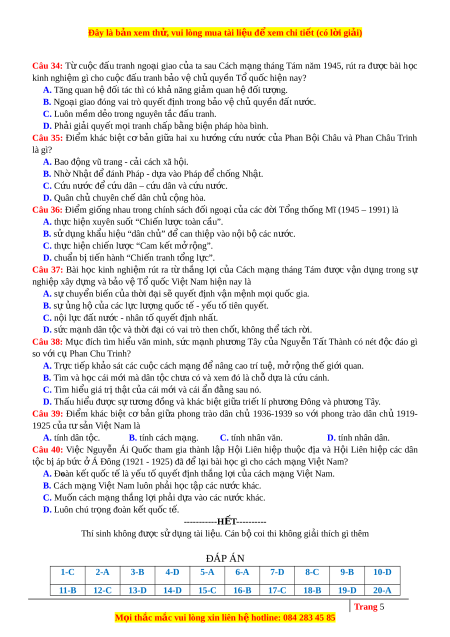 Câu 35: Đi m khác bi t c b n gi a hai xu h ng c u n c c a Phan B i Châu và Phan Châu Trinhể ệ ơ ả ữ ướ ứ ướ ủ ộ
