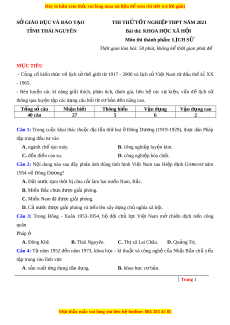 Đề thi thử Lịch Sử Sở Thái Nguyên lần 1 năm 2021