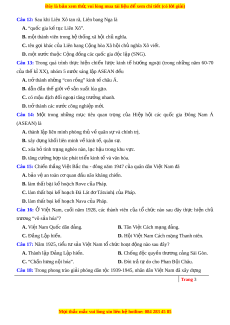 Câu 11: Quốc gia đ u ầ tiên trên th ế gi i ớ phóng thành công v ệ tinh nhân t o ạ là A. Xingapo. B. Angiên. C. Liên Xô. D. Malaixia. Trang 2 M i ọ thắc m c
