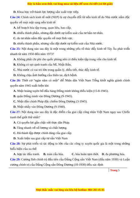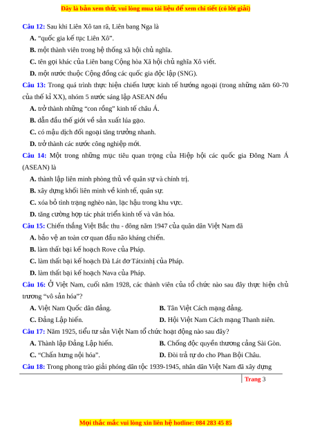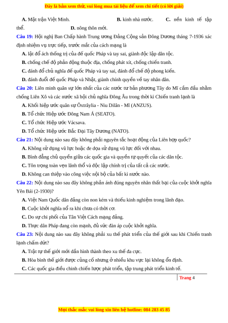 Đây là bản xem th , vu ử i lòng mua tài li u ệ đ xe ể m chi ti t ế (có l i ờ gi i ả ) A. M t ặ trận Việt Minh. B. kinh nhà nư c ớ . C. n n ề kinh tế t p ậ th . ể D. nông thôn m i. ớ Câu 19: H i ộ nghị Ban Ch p ấ hành Trung ư ng ơ Đ ng ả C ng ộ s n ả Đông Dư ng ơ tháng 7-1936 xác định nhi m ệ v ụ trực ti p, ế trư c ớ m t ắ c a ủ cách m ng ạ là