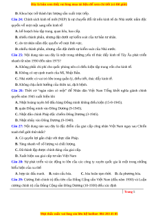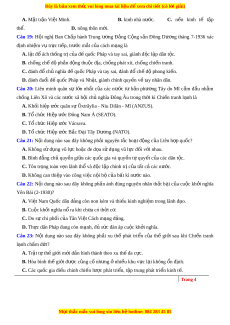 ả thích, phân tích, đánh giá, liên hệ các sự ki n ệ , v n ấ đề l c ị h sử thông qua luy n ệ t p ậ các d ng ạ câu h i ỏ t ừ c ơ b n ả đ n ế nâng cao. Tổng số câu Nh n ậ bi t ế Thông hi u ể V n ậ dụng V n ậ dụng cao 40 câu 27 5 6 2 Câu 1: Trong cu c ộ khai thác thu c ộ đ a ị l n ầ th ứ hai ở Đông Dư ng ơ (1919-1929), th c ự dân Pháp tập trung đầu tư vào A. ngành ch ế t o ạ máy. B. công nghi p ệ luy n ệ kim. C. đồn đi n ề cao su. D. công nghi p ệ hóa ch t. ấ Câu 2: N i ộ dung nào sau đây ph n