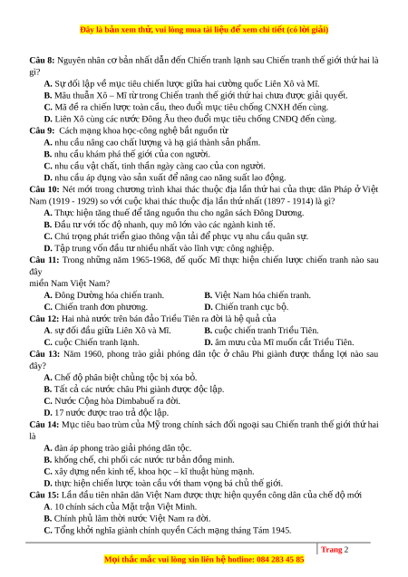 B. Tất cả các nư c ớ châu Phi giành đư c ợ đ c ộ l p. ậ C. Nư c ớ C ng ộ hòa Dimbabu ế ra đ i. ờ D. 17 nư c ớ đư c ợ trao tr ả đ c ộ l p ậ . Câu 14: M c ụ tiêu bao trùm c a ủ M ỹ trong chính sách đ i ố ngo i ạ sau Chi n ế tranh th ế gi i ớ th ứ hai là