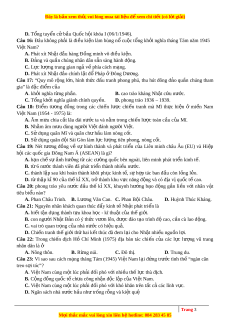 D. phong trào 1936 – 1939. Câu 18: Đi m ể tư ng ơ đ ng ồ trong các chi n ế lư c ợ chi n ế tranh mà Mĩ th c ự hi n ệ ở mi n ề Nam Việt Nam (1954 - 1975) là: A. Âm m u ư chia c t ắ lâu dài nư c ớ ta và n m ằ trong chi n ế lư c ợ toàn c u ầ c a ủ Mĩ. B. Nhằm âm m u ư dùng ngư i ờ Vi t ệ đánh ngư i ờ Vi t ệ . C. Sử d ng ụ quân Mĩ và quân ch ư h u ầ làm nòng c t ố . D. Sử d ng ụ quân đ i ộ Sài Gòn làm l c ự lư ng ợ tiên phong, nòng c t. ố Câu 19: Nét tư ng ơ đ ng