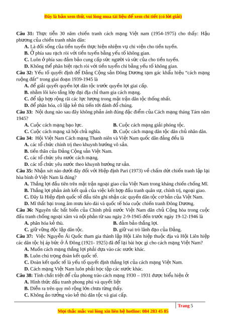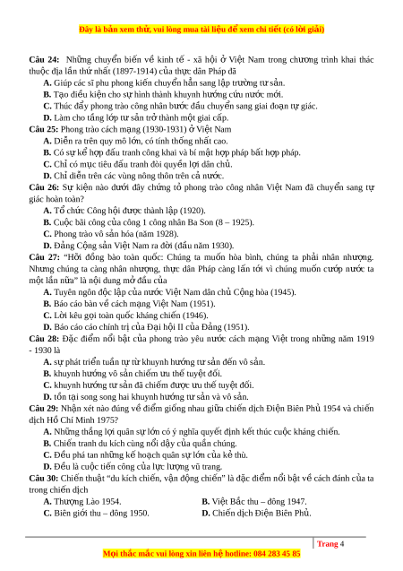 Đây là bản xem th , vu ử i lòng mua tài li u ệ đ xe ể m chi ti t ế (có l i ờ gi i ả ) Câu 24: Nh ng ữ chuy n ể bi n ế về kinh tế - xã h i ộ ở Vi t ệ Nam trong chư ng ơ trình khai thác thu c ộ địa lần th ứ nhất (1897-1914) c a ủ th c ự dân Pháp đã
