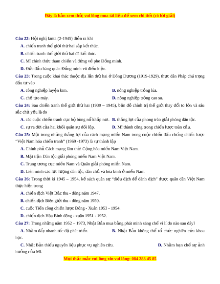 Đây là bản xem th , vu ử i lòng mua tài li u ệ đ xe ể m chi ti t ế (có l i ờ gi i ả ) Câu 22: H i ộ ngh Ia ị nta (2-1945) di n ra ễ khi