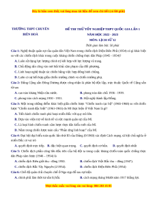Đề thi thử Lịch sử trường Chuyên Biên Hòa lần 1 năm 2023