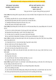 Đề thi thử Lịch Sử trường Chuyên Thái Bình lần 2 năm 2021