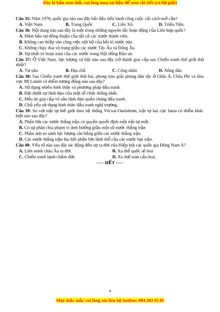 C. Chiến tranh lạnh chấm d t ứ . D. Xu th t ế oàn cầu hoá. ----- H T Ế ----- 4 M i