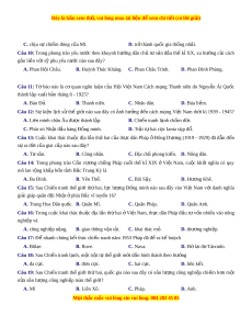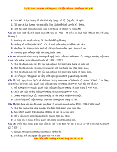 Câu 14: Trong phong trào C n ầ vư ng ơ ch ng ố Pháp cu i ố thế kỉ XIX ở Vi t ệ Nam, cu c ộ kh i ở nghĩa có quy mô lan r ng kh ộ ắp b n t ố nh ỉ Bắc Trung Kỳ là A. Ba Đình. B. Yên Th . ế C. Bãi Sậy. D. Hư ng K ơ hê. Câu 15: Sau Chi n ế tranh th ế gi i ớ th ứ hai, l c ự lư ng ợ Đ ng