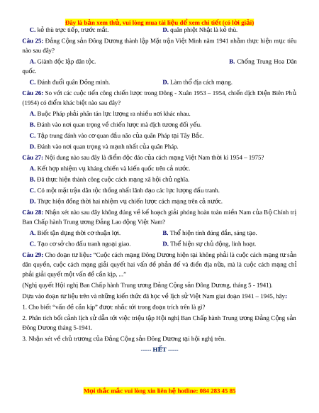 Câu 25: Đ ng C ng s n Đông D ng thành l p M t tr n Vi t Minh năm 1941 nh m th c hi n m c tiêuả ộ ả ươ ậ ặ ậ ệ ằ ự ệ ụ