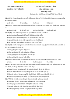 Đề thi thử Lịch Sử trường Đội Cấn lần 1 năm 2021