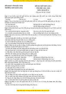 Đề thi thử Lịch sử trường Hàm Long - Bắc Ninh lần 1 năm 2023