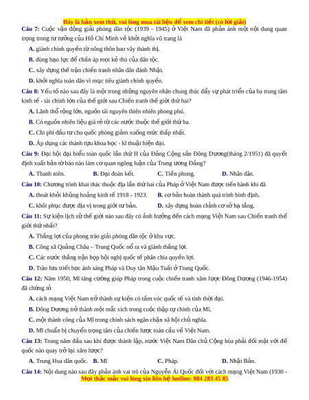 ệ đ xe ể m chi ti t ế (có l i ờ gi i ả ) Câu 7: Cu c ộ vận đ ng ộ gi i ả phóng dân t c ộ (1939 - 1945) ở Vi t ệ Nam đã ph n ả ánh m t ộ n i ộ dung quan tr ng t ọ rong t t ư ư ng ở c a ủ H Chí ồ Minh v kh ề i