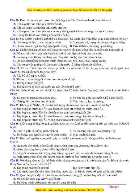 Đây là bản xem th , vu ử i lòng mua tài li u ệ đ xe ể m chi ti t ế (có l i ờ gi i ả ) Câu 30: Đ i ố v i ớ các nhà yêu nư c ớ ti n ề b i ố , Nguy n ễ T t ấ Thành có thái đ nh ộ t ư h nà ế o? A. Khâm ph c ụ tinh thần yêu nư c ớ c a ủ h . ọ