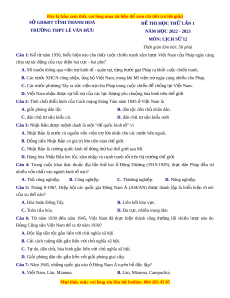Đề thi thử Lịch sử trường Lê Văn Hưu - Thanh Hóa lần 1 năm 2023