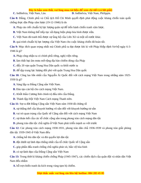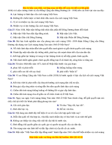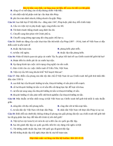 C. Bán vũ khí cho các cu c ộ chi n t ế ranh ở Tri u ề Tiên, Vi t ệ Nam. D. Vi n ệ trợ c a ủ Mĩ trong khuôn kh “ ổ K ho ế ạch Mácsan”. Câu 17: Đặc đi m ể c a ủ phong trào dân t c ộ dân chủ ở Vi t ệ Nam từ sau Chi n ế tranh th ế gi i ớ th ứ nh t ấ đ n ế đầu năm 1930 là A. sau thất bại c a ủ khuynh hư ng ớ t s ư n, khuynh h ả ư ng ớ vô s n phá ả t tri n m ể nh. ạ