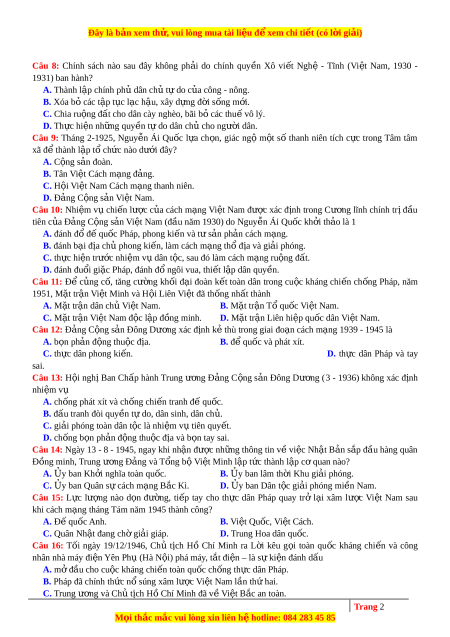 B. Pháp đã chính th c ứ nổ súng xâm lư c ợ Vi t ệ Nam l n t ầ hứ hai. C. Trung ư ng ơ và Ch t ủ c ị h H Chí ồ Minh đã v ề Vi t ệ B c ắ an toàn. Trang 2 M i ọ thắc m c