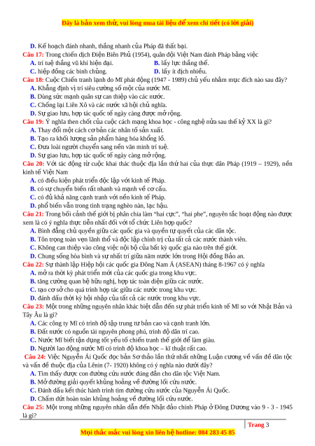 ớ Mĩ có trình độ khoa h c ọ – kĩ thu t ậ r t ấ cao. Câu 24: Vi c ệ Nguy n ễ Ái Qu c ố đ c ọ b n ả S ơ th o ả l n ầ th ứ nh t ấ nh ng ữ Lu n ậ cư ng ơ v ề v n ấ đ ề dân t c ộ và vấn đề thu c ộ đ a ị c a