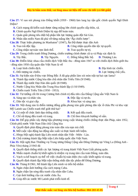 ệ nào sau đây cho cách m ng ạ Vi t ệ Nam? A. Tiến hành đ ng t ồ h i ờ cách m ng gi ạ i ả phóng dân t c ộ và cách m ng ru ạ ng đ ộ t ấ . B. Giải quy t ế hài hòa m i ố quan h gi ệ a ữ hai nhi m ệ v dâ ụ n t c ộ và dân ch . ủ C. S gi ự úp đ t ỡ bê ừ n ngoài là đi u ki ề n t ệ iên quy t ế đ đ ể ấu tranh giành đ c ộ l p. ậ D. Chỉ khi l c ự lư ng ợ vũ trang l n ớ m nh m ạ i ớ phát đ ng ộ qu n c ầ húng đ u t ấ ranh. Câu 25: Trư c