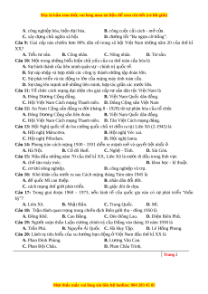 D. Sự tăng lên m nh ạ m ẽ nh ng ữ liên minh, h p ợ tác gi a ữ các nư c ớ l n. ớ Câu 11: Tổ ch c ứ cách m ng ạ đ i ạ di n ệ cho giai c p ấ t ư s n ả dân t c ộ Vi t ệ Nam là A. Đông Dư ng ơ C ng ộ đảng. B. Việt Nam Qu c ố dân đ ng. ả C. H i ộ Việt Nam Cách m ng ạ