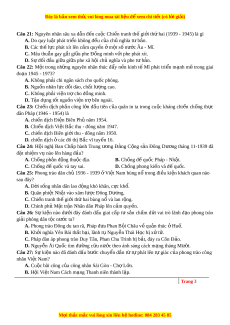 ả ta trong Đông - Xuân 1953-1954 để đối phó v i ớ k ế ho c ạ h Nava đã th ể hi n ệ ngh ệ thu t ậ quân s ự nào? A. Đánh đi m ể và di t ệ vi n. ệ B. Lừa địch đ ể đánh đ c ị h. C. Đi u ề địch đ ể đánh đ c ị h. D. Du kích k t ế h p ợ v i ớ đ t ộ phá. Câu 30: Đi m ể m i ớ c a ủ phong trào yêu nư c ớ và cách m ng ạ Vi t ệ Nam đ u ầ th ế k ỉXX đ n ế năm 1914 so v i ớ phong trào yêu nư c ớ cu i ố th ế k ỉXIX là A. gắn c u ứ nư c ớ v i ớ canh tân đ t ấ nư c
