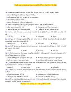 C. Phong trào dân ch 1936-1939. ủ D. Phong trào dân t c ộ dân chủ 1919-1925. Câu 2: Trong chi n ế d c ị h Vi t ệ B c