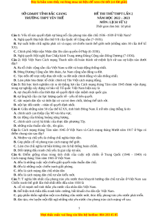 NĂM HỌC 2022 – 2023 MÔN: L C Ị H S 12 Ử Th i
