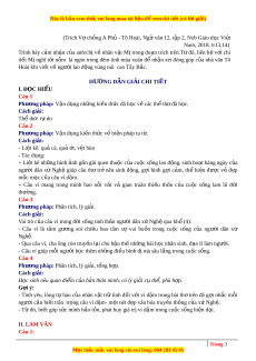 Đây là bản xem th , vu ử i lòng mua tài li u ệ đ xe ể m chi ti t ế (có l i ờ gi i ả ) Câu 3 (TH): Nh ng ữ dòng thơ sau giúp anh/ch ị hi u ể thêm đi u ề gì v ề vai trò c a ủ câu ví trong đ i ờ sống tinh thần ngư i ờ dân x ứ Ngh : ệ Câu ví đư m ợ bu n ồ vui đau khổ Giống ngư i ờ dân x ứ Ngh ệ ngàn đ i ờ Câu ví d y ạ tôi bi t ế ăn, bi t ế ở Nh ư ông bà, cha m , ẹ làng tôi.