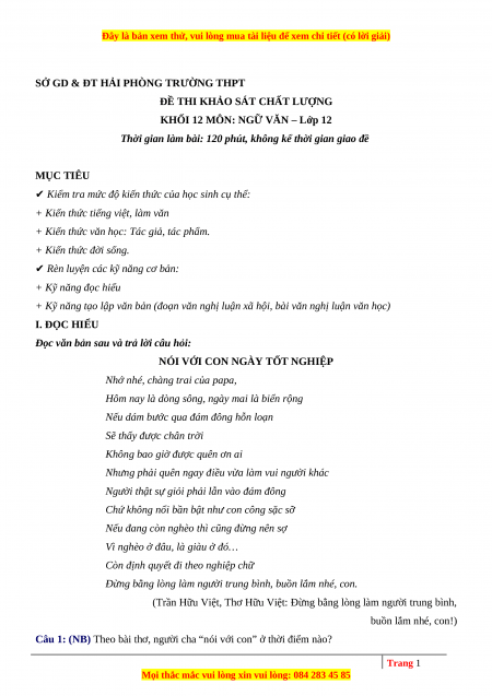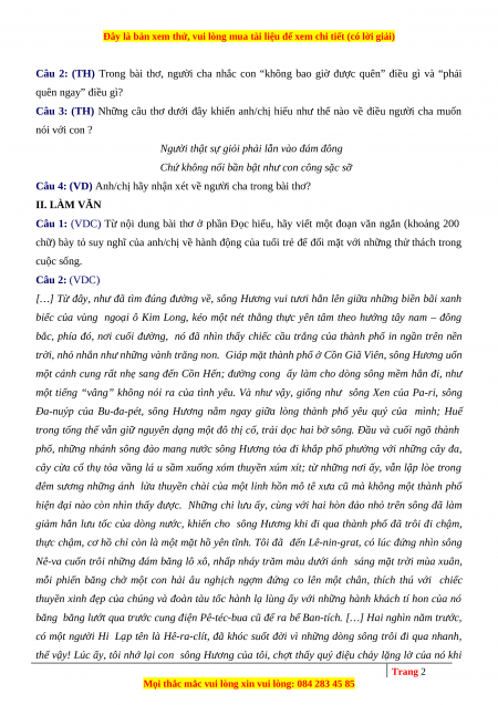 Câu 1: (NB) Theo bài thơ, người cha “nói với con” ở thời điểm nào? Trang 1