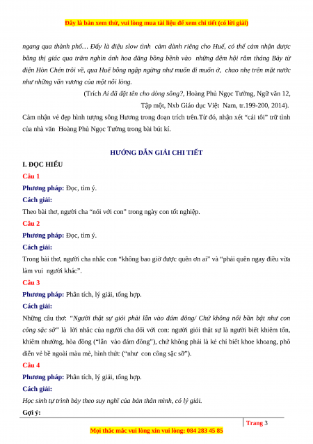 HƯỚNG DẪN GIẢI CHI TIẾT I. ĐỌC HIỂU Câu 1