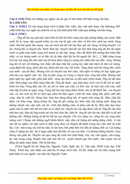 Câu 1: (VDC) Từ nội dung đoạn trích ở phần Đọc hiểu, hãy viết một đoạn văn (khoảng 200