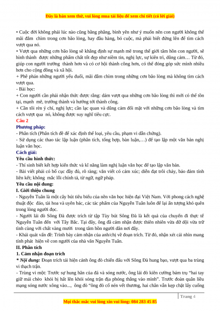 chữ) trình bày suy nghĩ của anh/chị về sự cần thiết phải biết vượt qua những cơn bão lòng. Câu 2: (VDC)