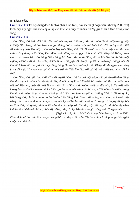 Cảm nhận vẻ đẹp của hình tượng sông Đà qua đoạn văn trên. Từ đó nhận xét về phong cách nghệ thuật của nhà văn. 2 Trang 2