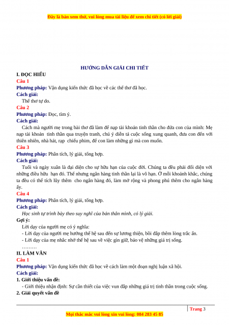 HƯỚNG DẪN GIẢI CHI TIẾT I. ĐỌC HIỂU Câu 1